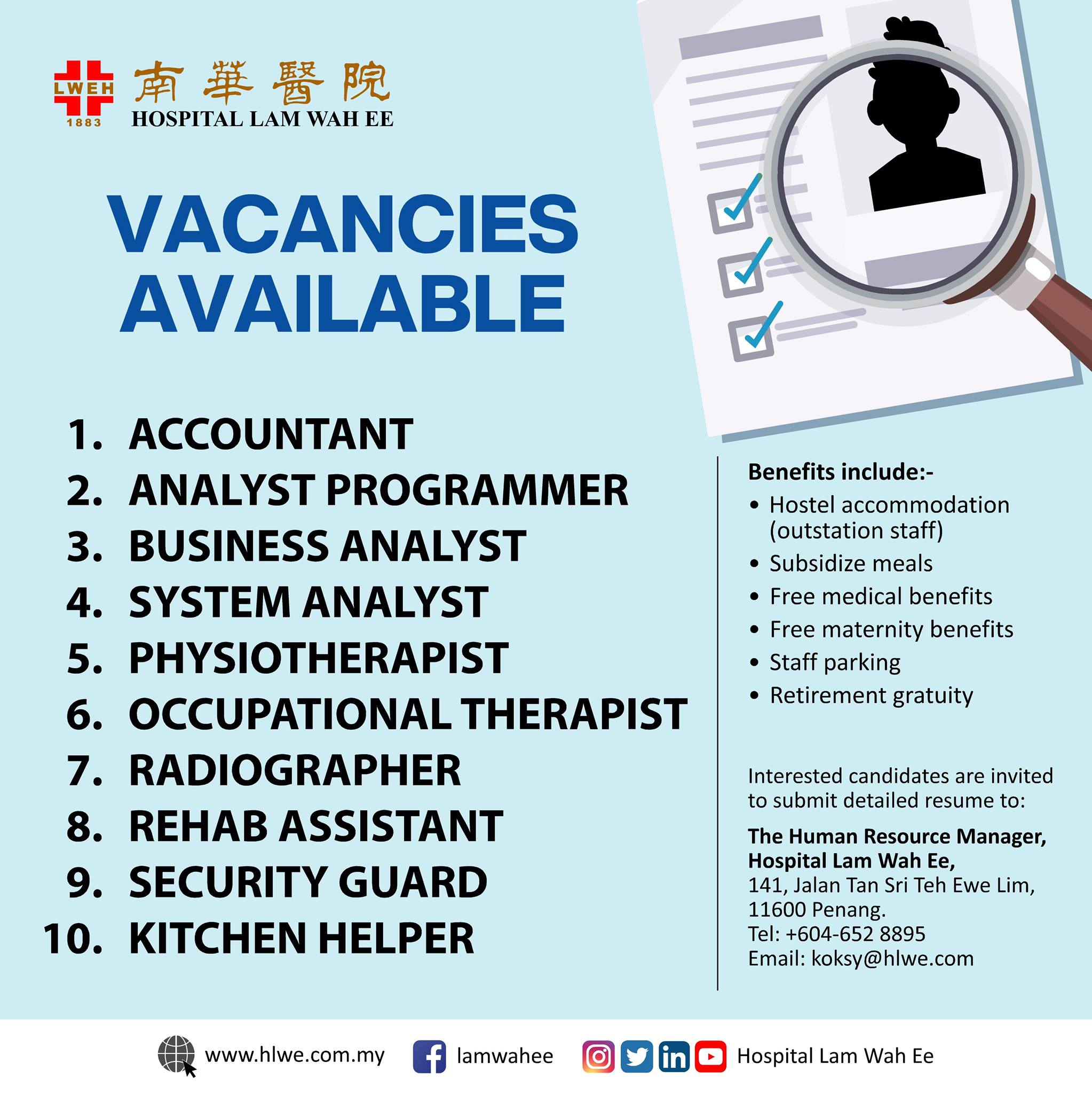 Hospital Lam Wah Ee On Twitter Interested Candidates Are Invited To Submit Detailed Resume To Ms Kok Tel 604 6528895 Human Resource Department 1st Floor Email Koksy Hlwe Com Https T Co 5khsywebqx Hlwe Hospitallamwahee Lamwahee Vacancy